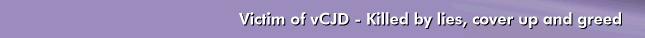 Please join me in my campaign to make those responsible for my Andrews unlawful death accountable for their deliberate decisions and actions. Those named and shamed on this website created, condoned and caused the avoidable human tragedy vCJD and are culpable. They put my beautiful boy into a cold grave, their lies and corruption have put millions of the UK population at risk of developing vCJD. Anyone who has lived in the UK since 1980 has eaten at least 50 BSE infected meals, BSE continues to affect UK herds.