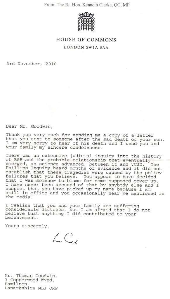 Meanwhile ordinary innocent citizens in the UK and across the globe are currently dying of vCJD….whilst John and Peter Gummer with the assistance of Kenneth Clarke Justice Minister ( the irony of that role makes me weep)… form what they believe is a impenetrable alliance with our current Prime Minster and his cabinet…….